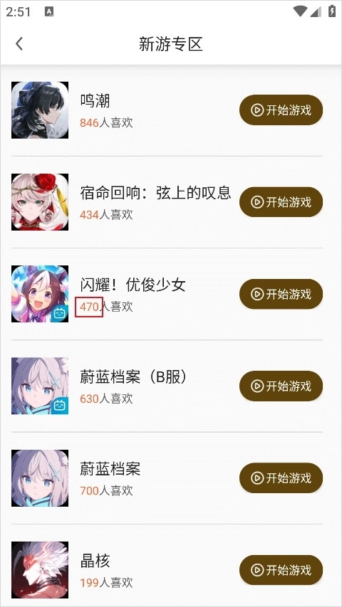 6.在“新游专区”能够找到近期上线的新游戏,还可以了解每款游戏的受欢迎程度。