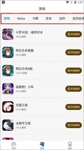 9.点击底部的“游戏”标签,这里对各类游戏进行了细致分类,大家可以依据自己的喜好随意挑选。