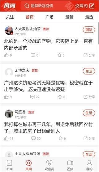 2、在【风闻】页面,这里有其他用户发布的吐槽内容和个人观点,你也可以点击右上角的“说两句”按钮来发表自己的看法。