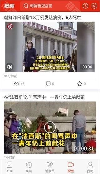 4、进入【视频】页面,这里汇聚了各类新闻视频。要是你看文字新闻久了,不妨来这里看看视频,也是个不错的调剂选择。