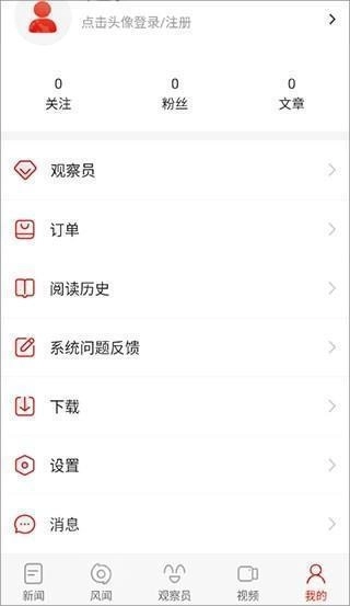 5、进入【我的】页面后,能看到观察员、订单、阅读历史等功能板块,你可以在这里查看自己的观看历史等内容。