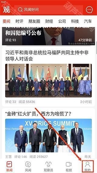 1、首先我们进入观察者网,点击下方我的按钮;