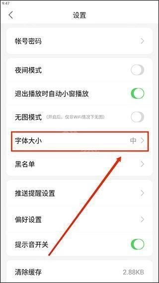 3、进入【设置】界面找到【字体大小】选项,挑选适合自己的字体大小就能完成相关设置。