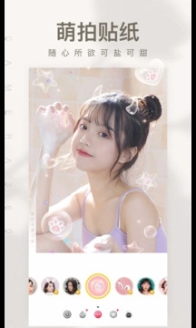 4、动态贴纸带来的趣味体验,借助智能人脸识别技术,长按拍照按钮即可录制短视频。