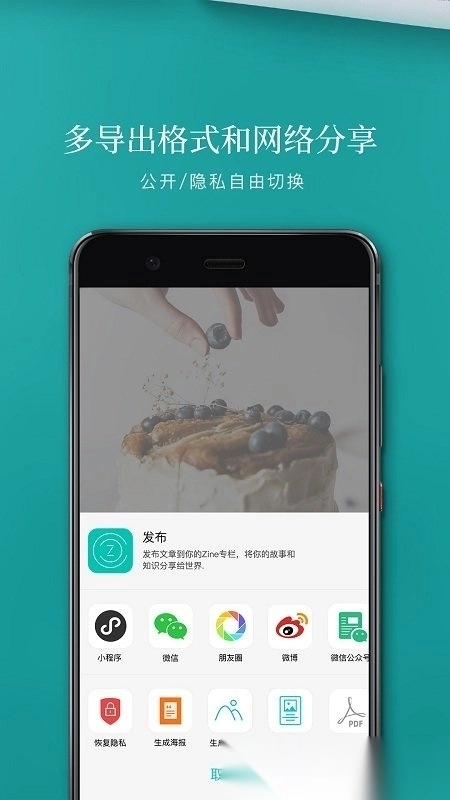 4、所有内容制作完成后,能够直接分享到朋友圈之类的社交平台,也可以把图片保存到本地。所有的编辑记录都会自动保存在Zine的云端空间里,便于日后随时查看和修改。