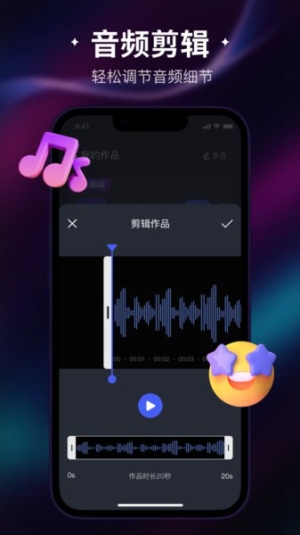 2. 该应用配备了配音、修音、音频提取与音频剪辑等丰富的编辑功能,能够充分满足用户在音频处理方面的多元需求。