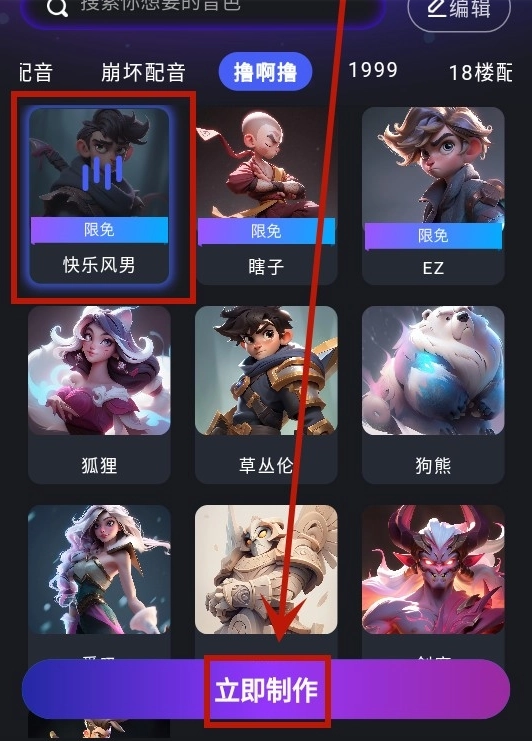 3.选择您需要的音色,然后点击【立即制作】。