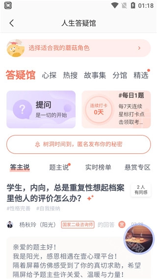 1、倾诉心事:在壹心理,你将不再是孤岛。这里有2000万人在线讨论的问答社区,说出你的烦与难,一定有人感同身受。