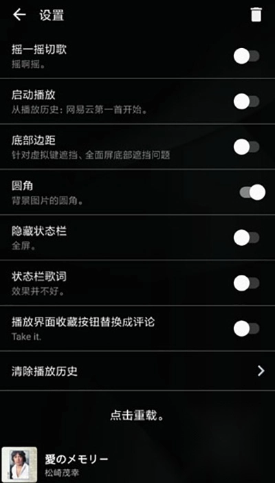 4、进入到设置页面之后,用户还可以尝试开启“摇一摇切歌”、“状态栏歌词”、“底部边距”等服务