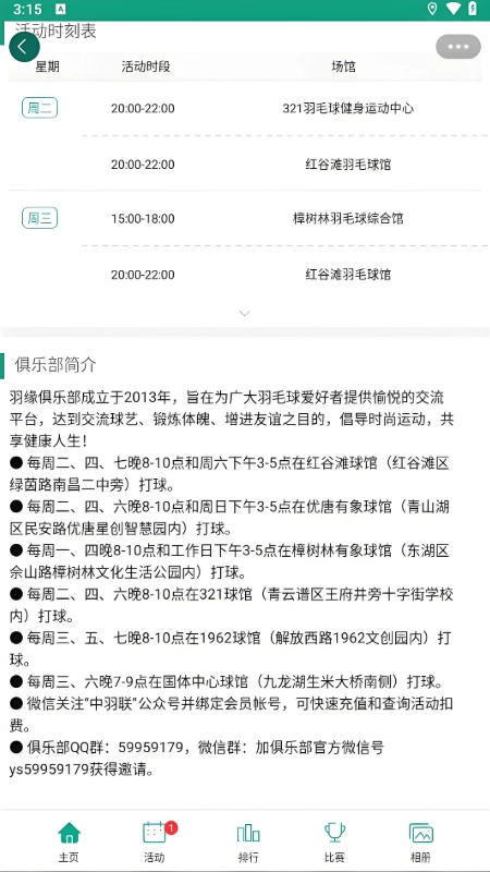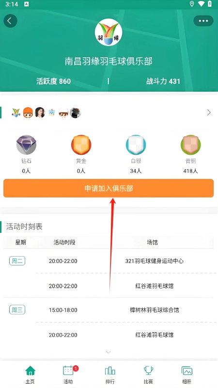 3、点击俱乐部进入详情介绍页面,有着详细的活动时刻表