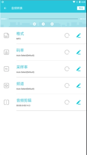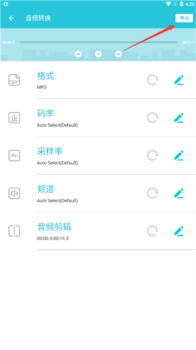 3、之后我们对其修改格式、频道、码率、采样率以及音频剪辑;