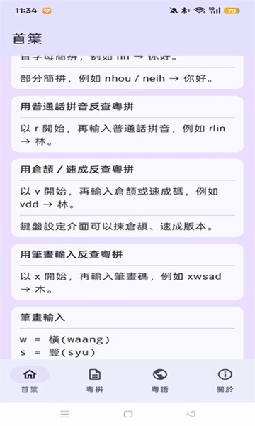 3、拼音反查:支持普通话拼音反查粤拼,助力语言学习与输入练习。