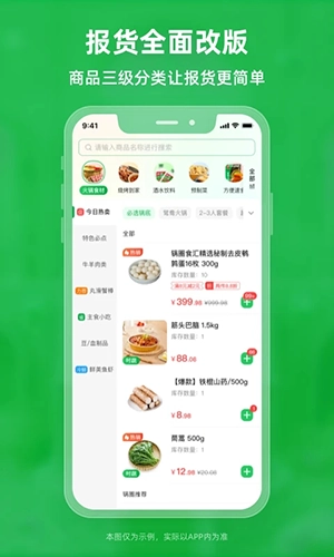 货源进行采购,锅圈云铺不同的品类分类,显示不同的采购,很好的在线进行采购。