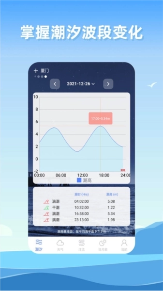 2,数据展示:赶海潮汐提供表格和曲线图展示,直观明了。