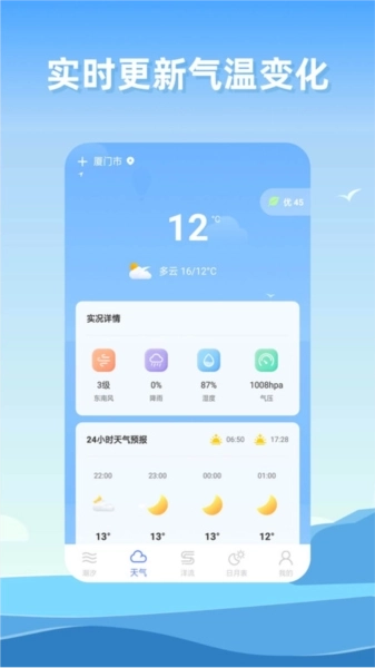 1,离线查询:用户可查询全国大部分县市的天气预报,并了解日出时间和空气质量。