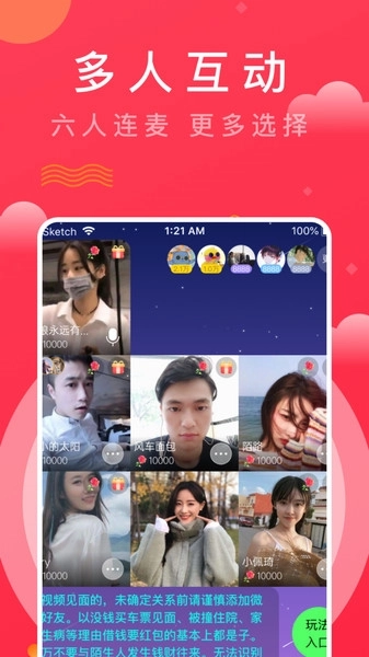 4、多人交友:支持多人语音视频聊天交友,举办生日会和游戏趴,既可参与互动也可围观。群聊互嗨,避免尴尬聊天情况。