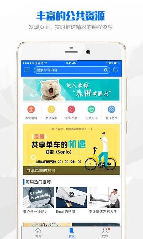 不仅仅拥有课程资源,还提供了相关新闻资讯、考试、直播等学习资源;
