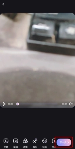 4、完成各类滤镜、音乐等功能的设置操作后,点击下一步按钮;