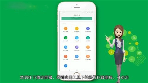 2、接着向下滑动屏幕,找到“实用工具”栏目下的“骚扰拦截”图标并点击。