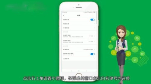 3、随后点击右上角的“设置”小图标,在弹出的窗口中选择“白名单号码”这一选项。
