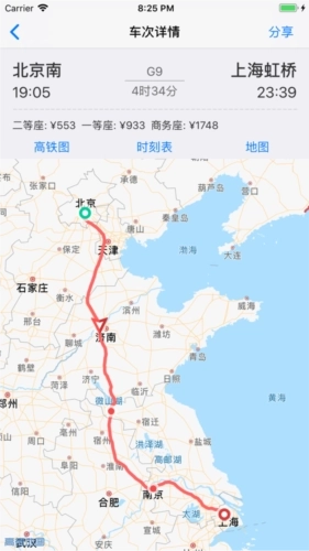 3、提供高铁列车信息分享功能,支持在线搜索列车信息,并可即时分享车次详情。