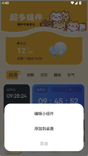 多样化小组件:提供全屏时钟、倒计时、日历、天气、记分牌等多种实用桌面组件