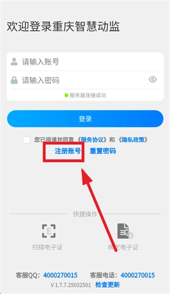 1、在本站安装并打开重庆智慧动监,点击注册按钮