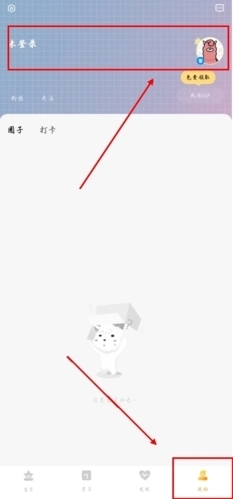 1、先打开并进入【我的】界面,接着点击上方的【未登录】按钮。