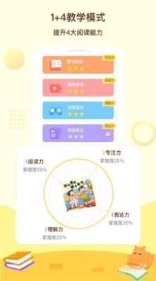 3、1+4教学模式:提升4大阅读能力为大家去分享,阅读力、专注力、理解力和表达力。