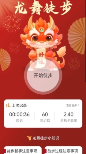 龙舞行路是一款由广西荷娱贸易有限公司推出的手机运动计步管理类软件,为用户提供了丰富的运动管理服务,每一次运动都能够得到完整的记录。在龙舞行路手机版中多种徒步运动活动数据保存统计,将用户的步数完整记录,并且提供热量消耗、运动历程、时间均速等等。在春节期间更有及各种猜灯谜娱乐玩法参与,感兴趣的玩家欢迎前来吧!