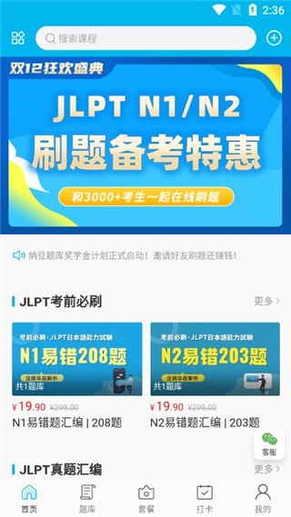 1、在纳豆题库首页可以看到有海量真题课程