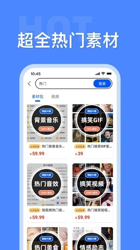 素材大师是一款能让你轻松获取各类素材的软件。这里汇聚了多种热门类型的素材,还配备了实用工具,支持关键词搜索,一键搜索速度快,操作简单易上手,更能在线完成编辑处理,是广大创作者不可或缺的软件之一,基本能满足大家找素材的需求!素材大师堪称高效的素材搜索神器,一键就能获取上万款素材,各种风格类型应有尽有,不管你需要绿幕素材、搞笑素材还是风景素材,都能一键获取。软件内还有便捷的创作工具,涵盖视频去水印、MD5修改、视频转文字、语音转文字、人像换背景与抠像等功能,众多实用工具为你的创作助力。