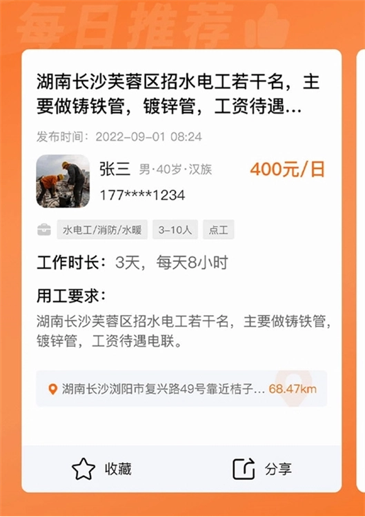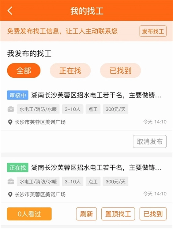 一键发布招工信息:企业或包工头能够迅速发布招工需求,当天就能匹配到合适的工友,有效缩短招聘周期。