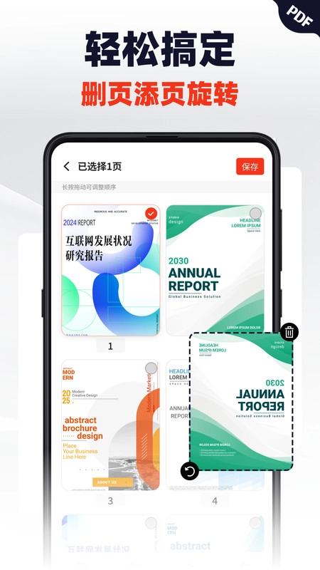 2、具备页面管理功能,用户可以随心删除、添加、旋转或重新排列PDF页面,灵活调整文档结构。