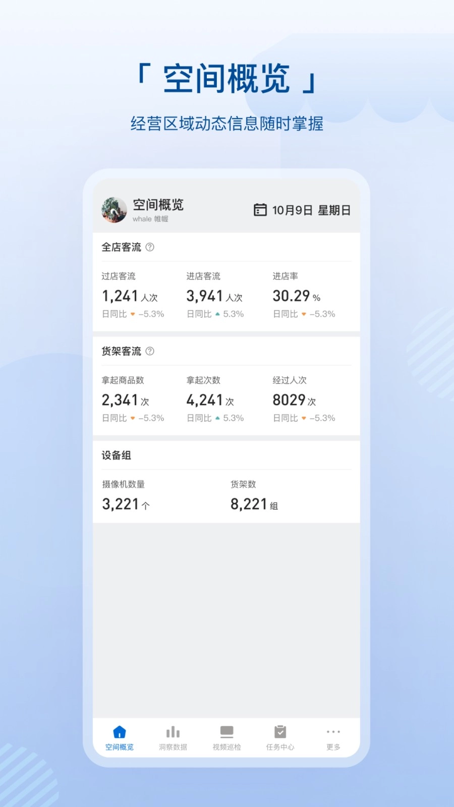 3、视频巡店:数智空间视频巡店功能可实现门店智能化升级,实时洞察门店运营中的异常情况,助力门店在运营管理环节降低成本、提升效率。