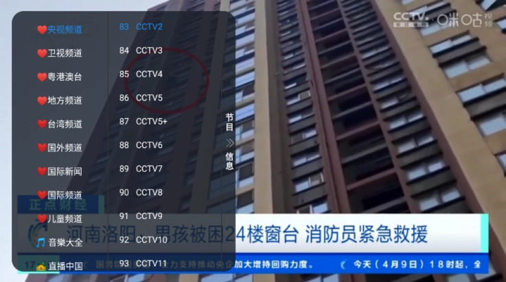 3、点击屏幕唤醒频道菜单;