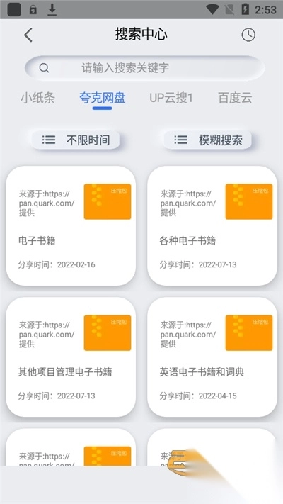 4、通常情况下,只要是有人分享过的内容,在这款APP上基本都能搜到。实际上,它的资源涵盖范围极为广泛。诸如小说、视频、教程、学习资源等各类内容,大家都可以通过更换关键词来进行搜索。