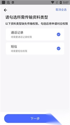 3. 您的手机上缺少换机助手需要的权限。请检查您的手机是否已经授权相机、存储或网络权限。