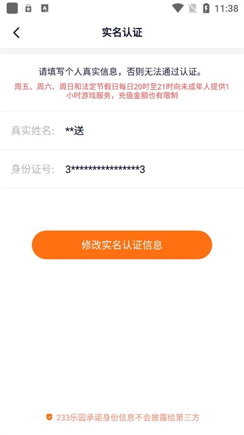 点击“修改”后,当前的实名认证信息将被清除,且实名认证信息每日仅有十次清除机会。
