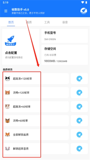 2、进入首页之后点击画质修改,可选择不同画质。
