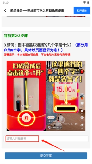 6、这样就能获取文字,该文字即为问题的答案,输入此答案即可。