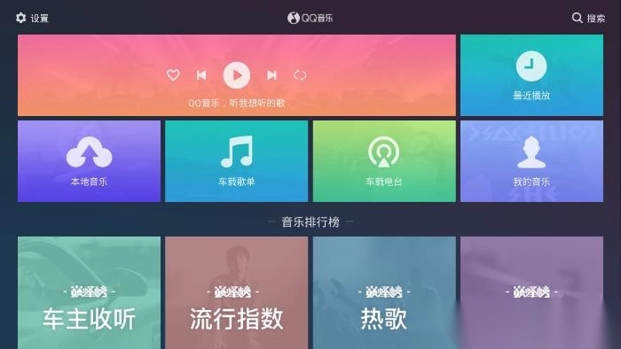 1. 直观布局,功能尽显:当您成功下载并安装QQ音乐车机版后,会看到界面简洁直观。主页清晰呈现当前播放、最近播放、本地音乐、为你推荐、个性电台以及我的音乐这六大核心区域。再结合左上角的“设置”与右上角的“搜索”,所有功能都近在咫尺,导航操作轻松便捷。