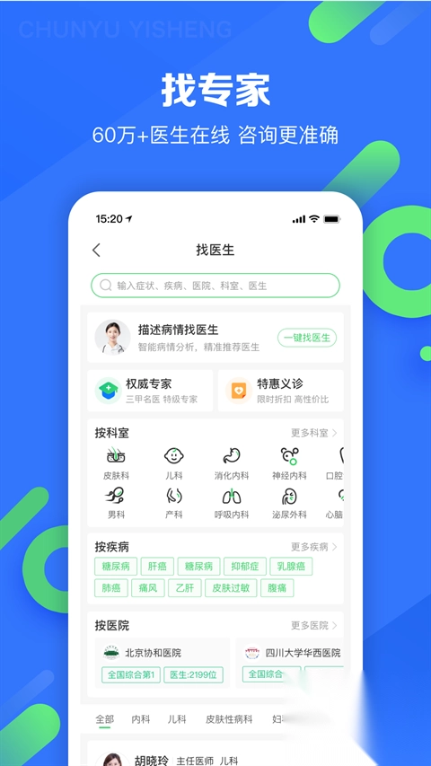 50个科室,2000种擅长疾病,40万医生遍布全国,总有一名能帮到你;