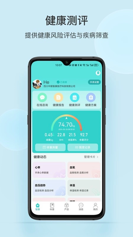 支持在线健康咨询、主动健康管理服务,解答用户的健康疑问。
