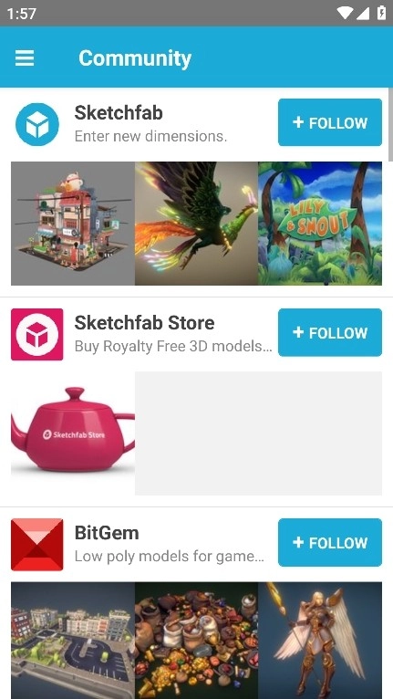 Sketchfab是一款面向3D建模爱好者的社区平台应用程序。在这款软件里,用户可以获取大量风格各异的3D模型资源,能在平台上便捷地免费下载模型项目。不仅如此,Sketchfab还为用户准备了许多有趣好玩的AR玩法,使用户能够在现实世界中轻松体验。此外,软件吸引了众多行业大佬入驻,他们会展示自己的3D模型作品,助力用户从中获取更多的启发与灵感。