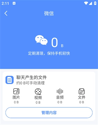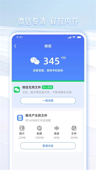 专业清理微信缓存垃圾,让聊天更流畅,一键即可释放更多空间。