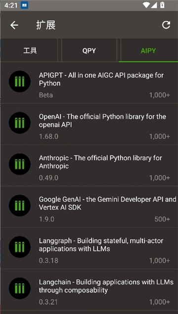 QPython3是一款极为专业且可靠的安卓Python脚本引擎编辑软件。它包含终端、Notebook、编辑器、扩展、新闻、设置等多个板块。在此软件中,你能够获取各类扩展插件,随时随地编写脚本代码,并借助所搭载的SL4A库,快速便捷地完成脚本代码的相关操作,享受一站式的Python开发服务。有需求的小伙伴,快来试试QPython3吧!