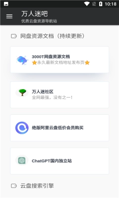 万人迷吧,这可是一款超优质且实用的网盘资源搜索服务软件!它能助力用户更高效地获取心仪资源。该软件功能堪称强大,各类软件、游戏、电影、音乐等资源查询统统涵盖其中。用户借助它,能轻松寻得自己所需的资源素材,充分满足不同用户的使用需求,还带来诸多优质服务。重点是,这里面没有任何广告信息干扰哦!众多应用资源,在线一键即可查询。快来体验一番吧!!
